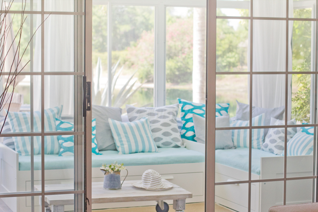 Eu sei que vão adorar esta Varanda também porque é um belo exemplo da conjugação dos tons que adoro e que falava ontem. A base em branco com o azul agua e o coral que lhe dão um ar fresco, leve e feliz. Embora seja de inspiração costeira esta varanda exterior tem o requinte especial da lareira, que o faz ser de ampla utilização no Verão e no Inverno. Um excelente trabalho da Krista Solomon via House of Turquoise.
