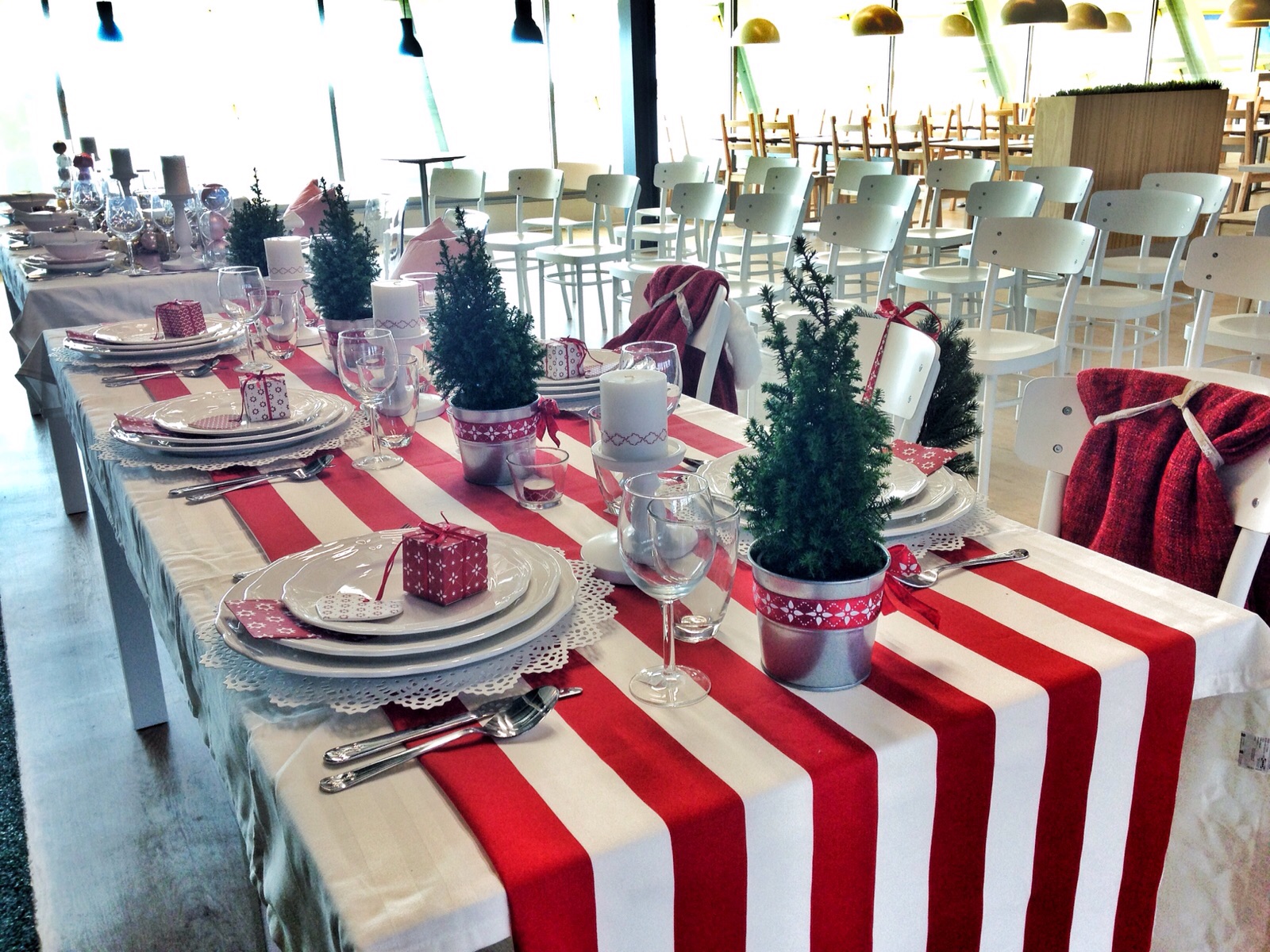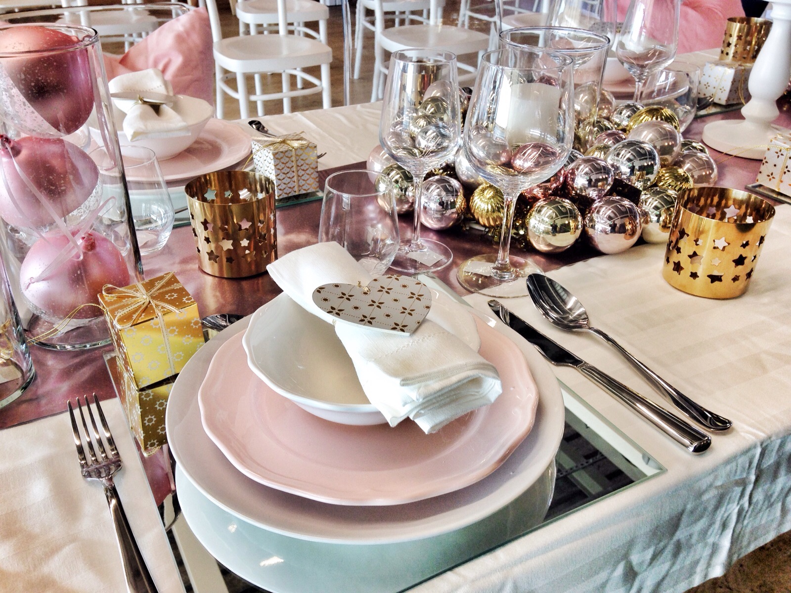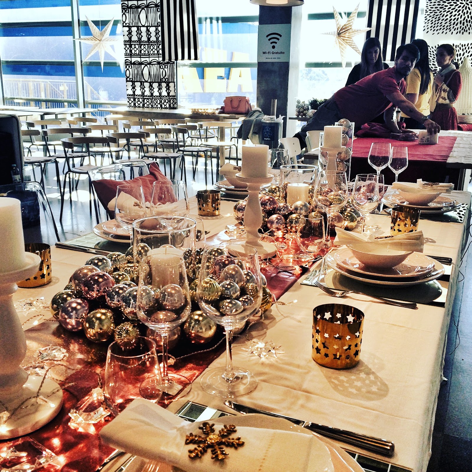 Uma decoração diferente e mais inspirada no Glamour Feminino, em que o pinheiro verde deu lugar à tendência do ano em àrvores de Natal, em tons de branco neve e brilhos dourados. E o encarnado, deu lugar ao rosa que é a cor do ano 2016, e as riscas preto e branco, que resultam sempre num statement fashionista actual.